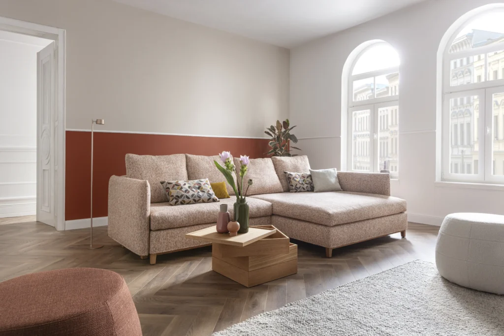 Modell Messina vereint zeitgenössische Klarheit mit einladender Behaglichkeit. Das raffinierte Design mit Dreh- und Klappelementen ermöglicht eine flexible Umgestaltung.