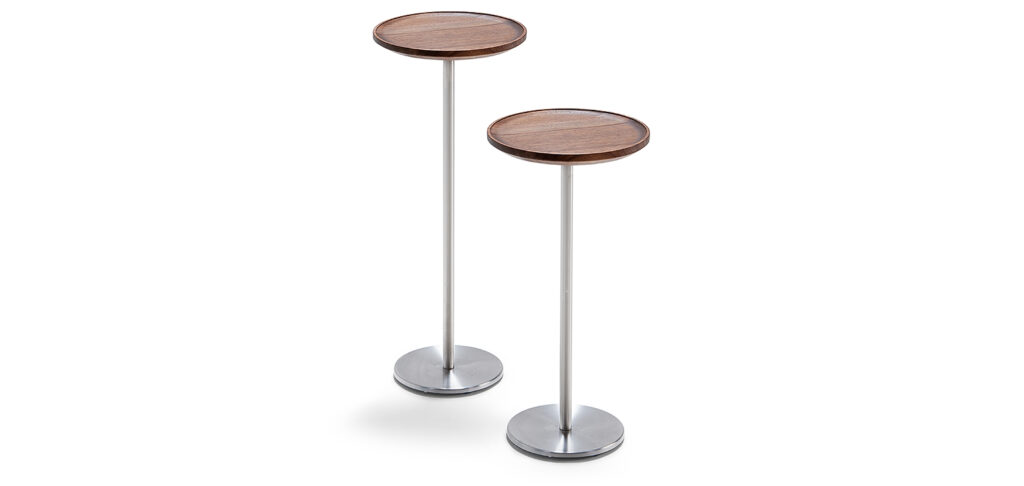 Der Beistelltisch Havanna bietet eine praktische kompakte Ablage immer dort, wo Sie sie brauchen. Ob am Sofa, Sessel oder Bett, oder wo auch immer. Havanna ist mobil und macht praktisch überall eine gute Figur. Die Ablage ist in massiver Eiche oder Nussbaum, das Gestell in Edelstahl geschliffen oder Feinstruktur schwarz erhältlich. Durchmesser 26 cm, Höhe 55 oder 65 cm.